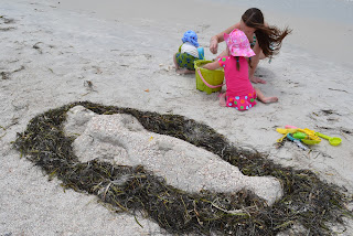 Our day at the beach was very relaxing. Since I have been obsessed with Ariel (The Little Mermaid) lately, we stayed with the theme of mermaids. Mom even helped us make a sand mermaid with shells and seaweed.